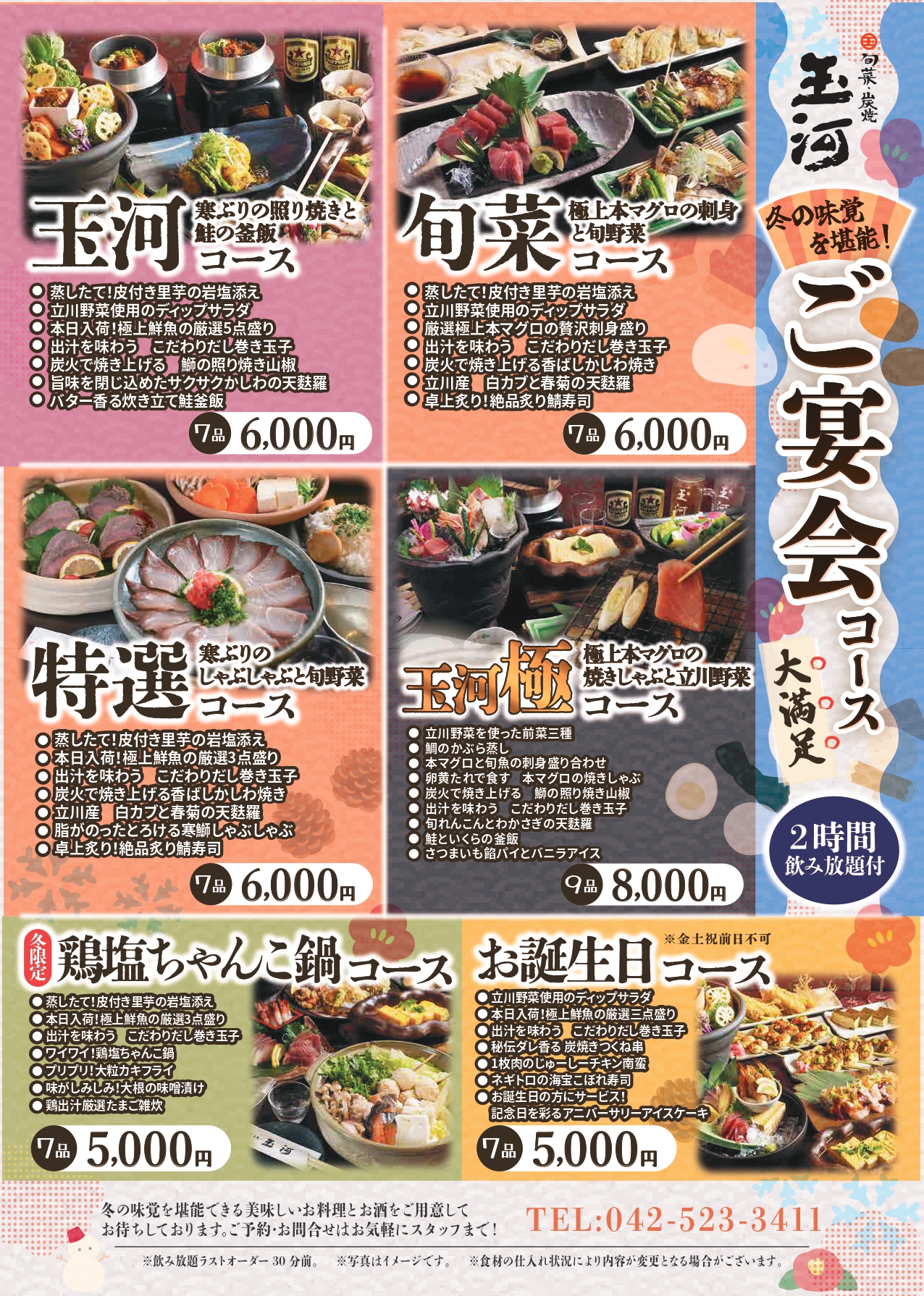 11/1〜宴会コースがリニューアルしました。冬の食材を使用した新コースを5種類ご用意しております。