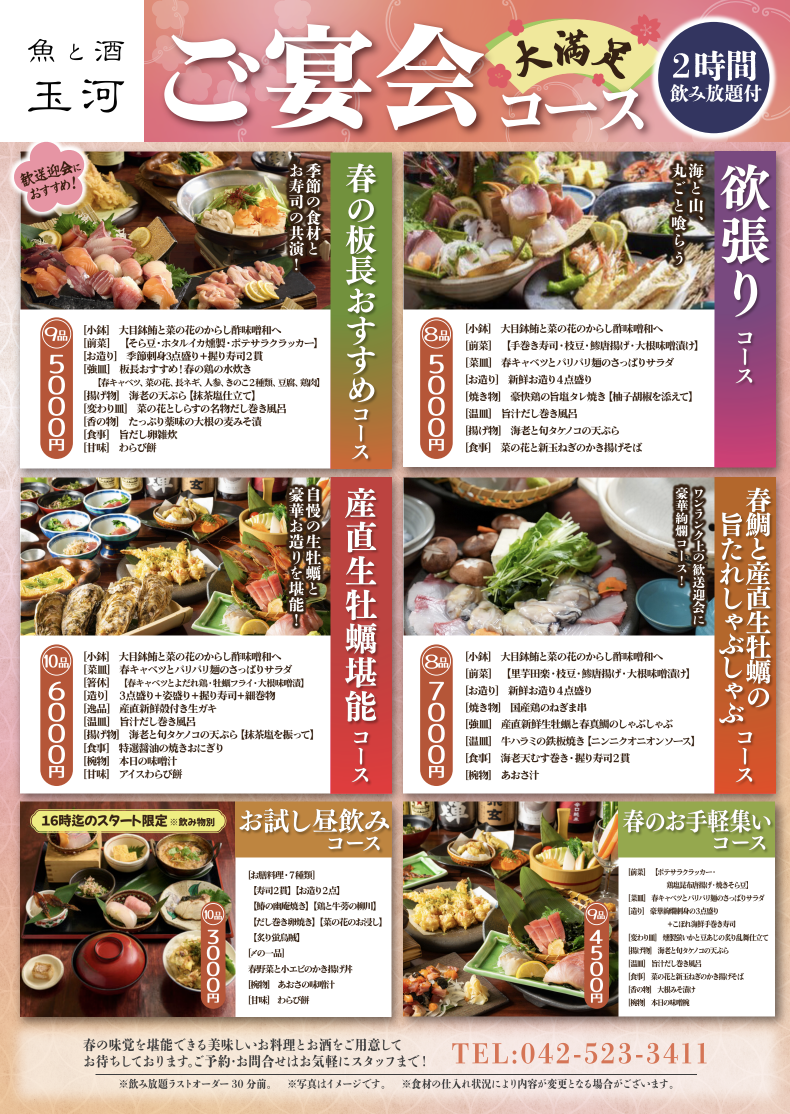 新生活の始まるこの時期、歓送迎会などのお集りに、ぜひご利用ください。